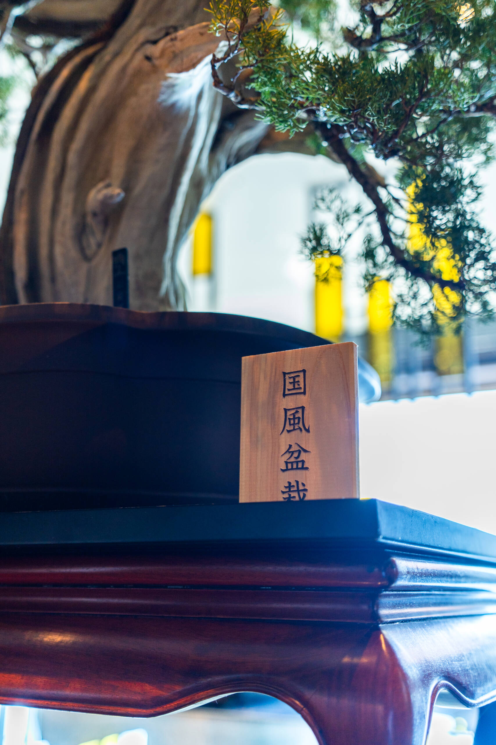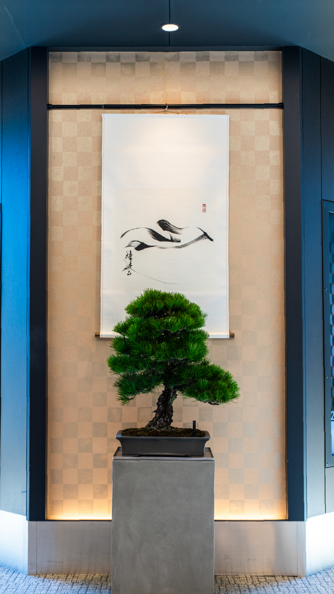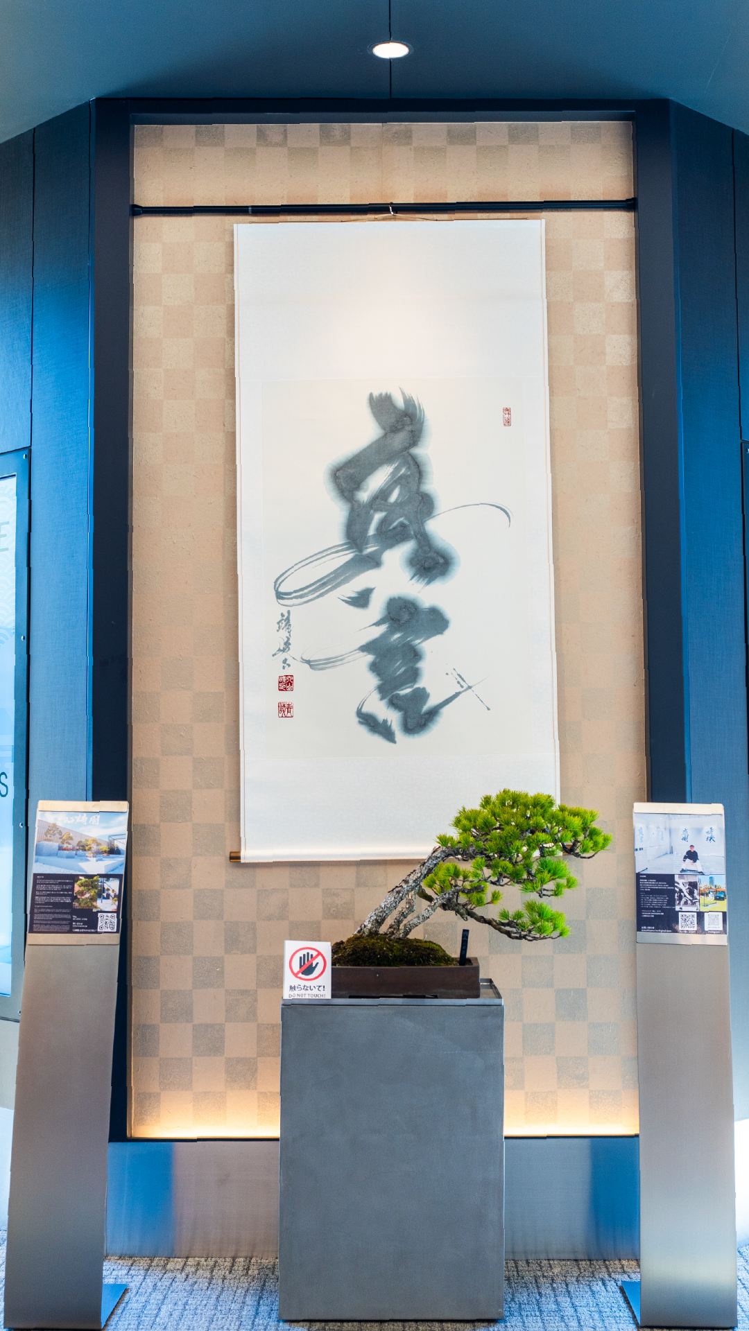 盆栽と書が同じ空間にあることで、それぞれの存在感がより際立ち、静かな緊張感と調和が生まれました。