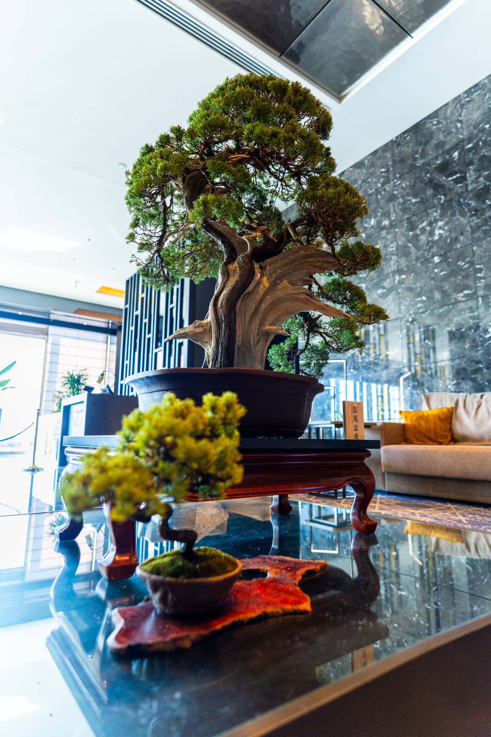 ロビーの待ちエリアには「国風盆栽」を展示しました。